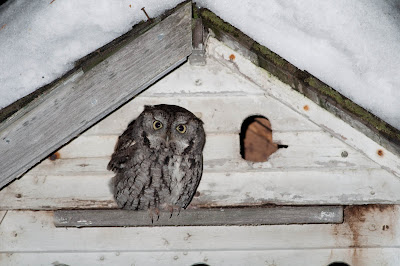 Net als vorig jaar kwam er elke avond net voor het donker werd een klein uiltje tevoorschijn uit het vogelhuisje in de tuin van Casey's ouders.