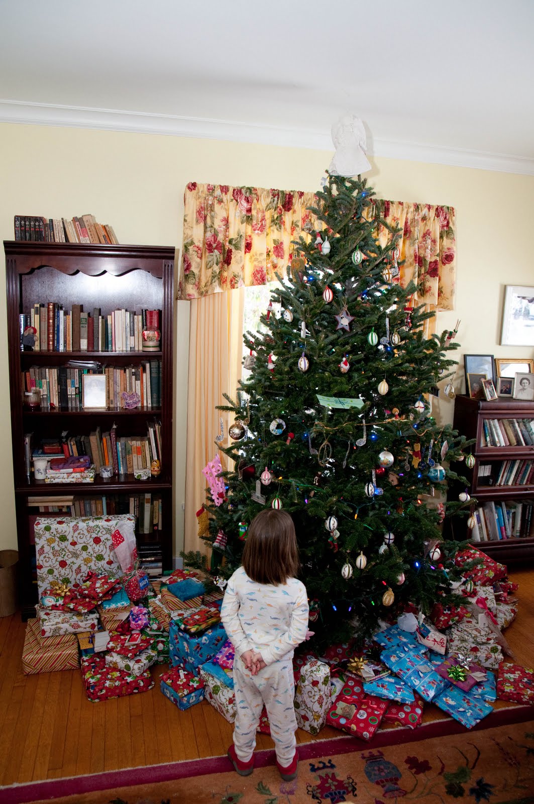 Na het versieren van de boom worden er langzaam maar zeker steeds meer kerstkado's onder de boom gestapeld door iedereen. Wat een berg!