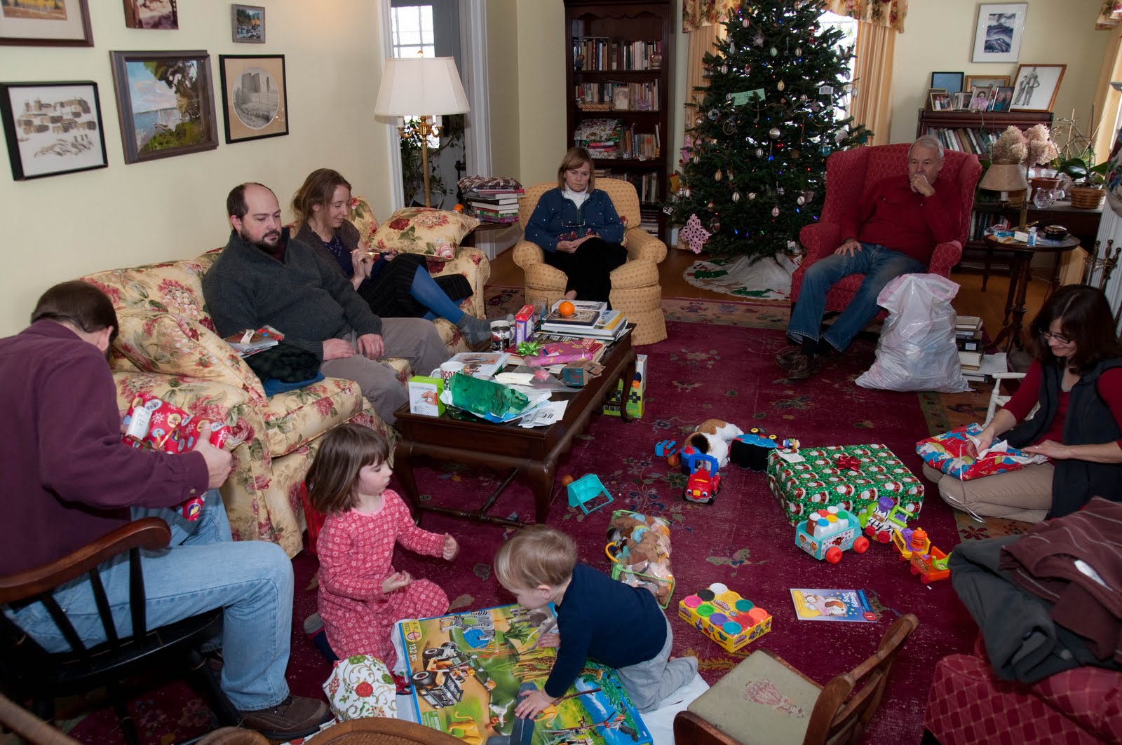 De hele familie bij elkaar - flink vermoeid na een uitpak marathon van enkele uren