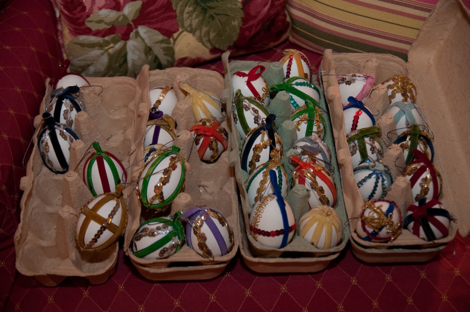 De zelfgemaakte feestelijke kersteieren gaan nog een jaartje mee