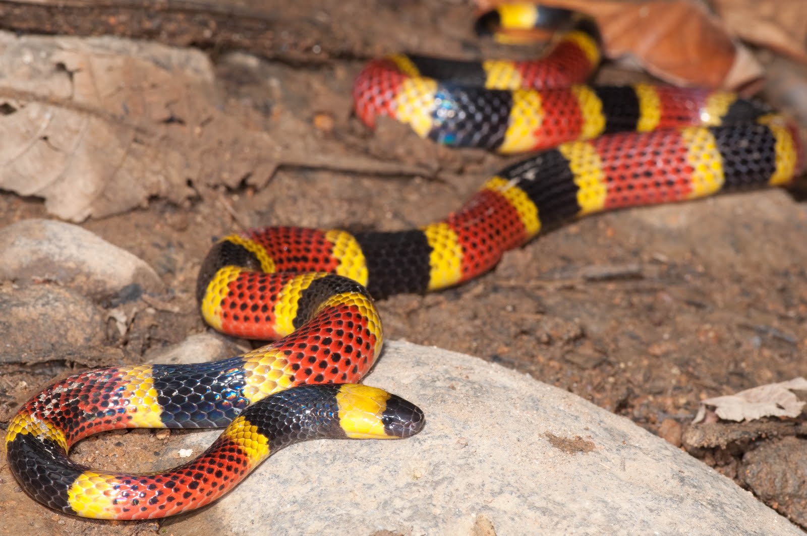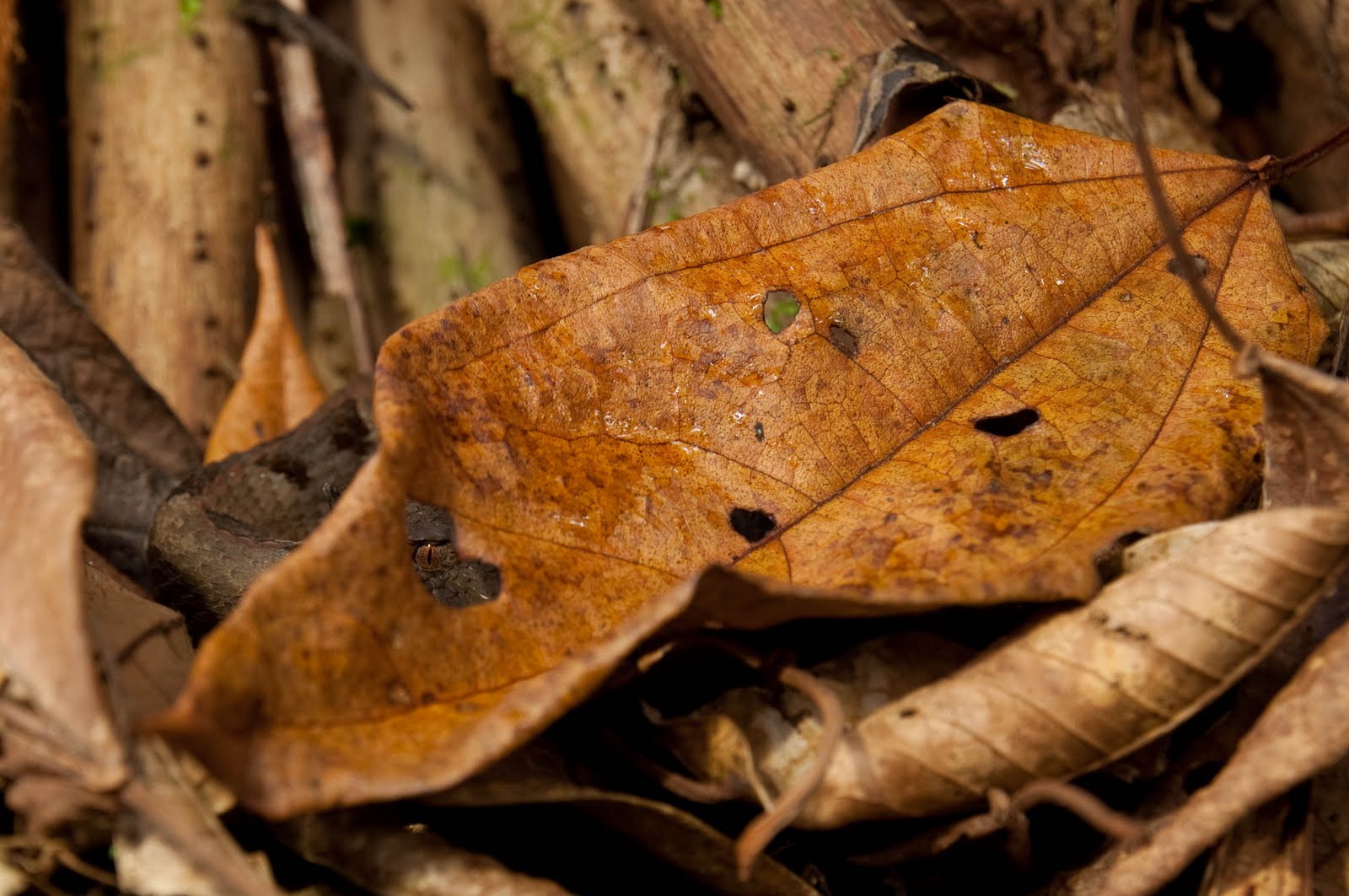 Heel erg goed gecamoufleerd! Zie je 'em? Ik hoop het wel want deze is namelijk behoorlijk giftig!